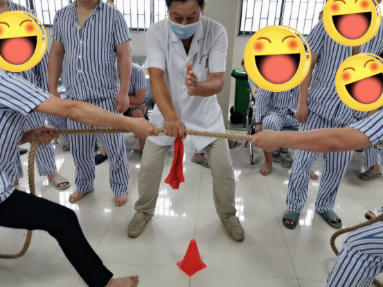 粗绳悠悠握在手,丁字跨步准备足,一声长哨身倒后,紧拉绳索不松手,咬紧牙关粗气吐,各不相让颈脖粗,比赛终归有输赢,赛后言欢友情留。