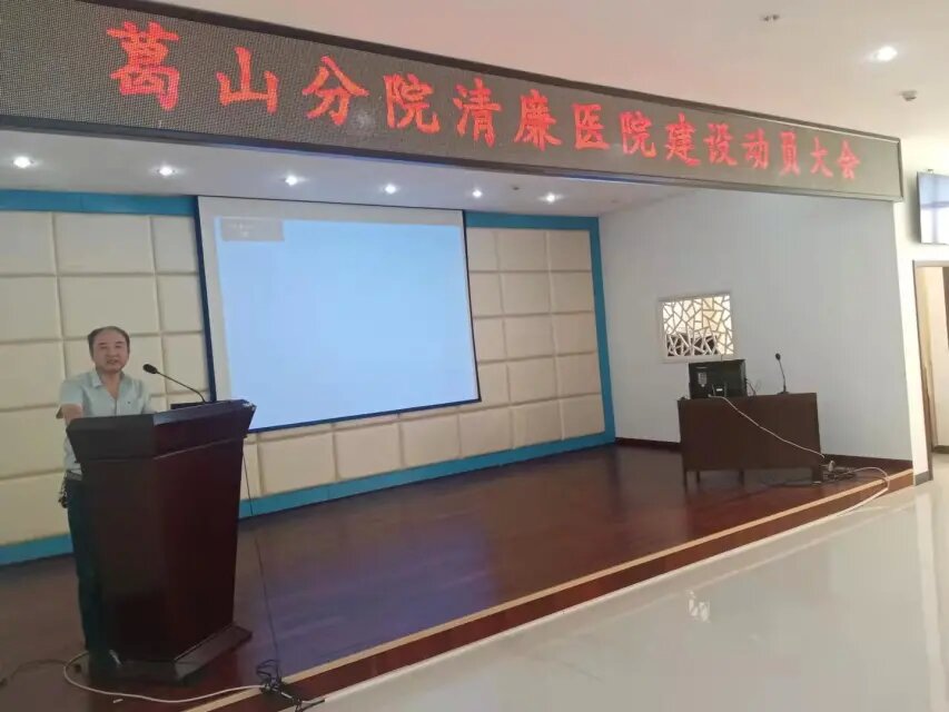 为进一步学习贯彻落实省委、市委关于建设“清廉湖北、清廉鄂州、清廉卫健”的工作要求,落实推进市中心医院开展党风廉政宣传教育月暨“清廉医院”建设活动,促进我院持续健康和谐发展,营造“廉洁行医、诚信服务”的浓厚氛围,树立“廉洁、自律、公正、诚信”的服务理念,9月23日下午,市中心医院葛山分院(市精神卫生中心)召开了“清廉医院”建设动员大会,全体干部职工参加会议。